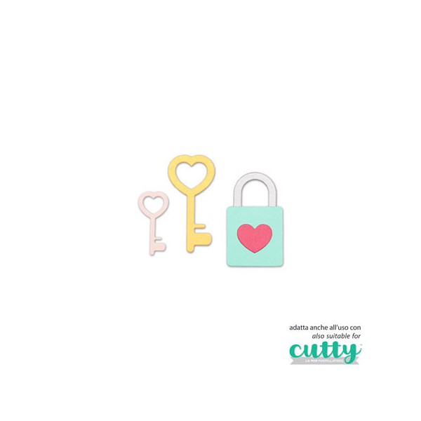 Schneideschablone, Lucchetto: 4,3x2,3 cm - Chiavi: 2,9x1,4 cm - 4,5x2,1 cm